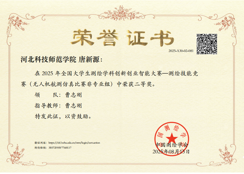 经过激烈角逐,由我校ky开元集团官网曹志刚老师指导的土木工程专业唐新源同学凭借平时的刻苦训练和线上仿真赛场上的沉着应对,荣获技能竞赛非专业组“无人机航测仿真比赛”二等奖。