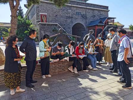 2022年9月21日上午,学校教发中心赵华恩主任组织学校督导组邓西录,朝鲁,吴建华,白继海等专家赴山海关古城检查ky开元集团官网城规20级学生美术写生实习。ky开元集团官网党委书记姜亚东,党委副书记副院长李强华和学院督导组成员陪同检查实习。