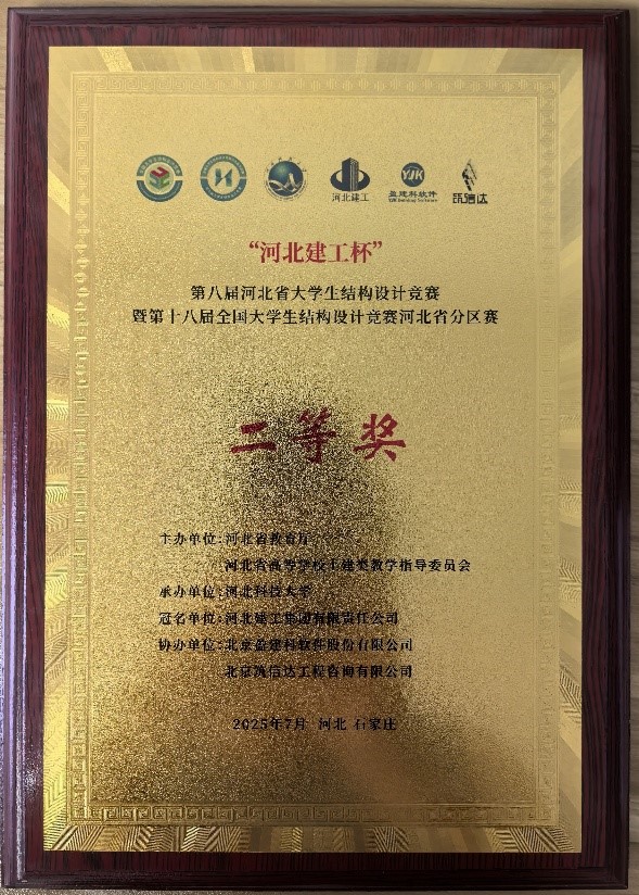 2025年7月12日至14日,由河北省教育厅、河北省高等学校土建类教学指导委员会主办,河北科技大学承办的第八届河北省大学生结构设计竞赛暨第十八届全国大学生结构设计竞赛河北省分区赛成功举行。我校2支代表队与全省25所高校54支队伍同台竞技,最终凭借扎实的专业功底和出色发挥,分别荣获省赛一等奖和二等奖。