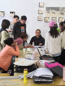 专业教师评阅学生毕业设计展览作品