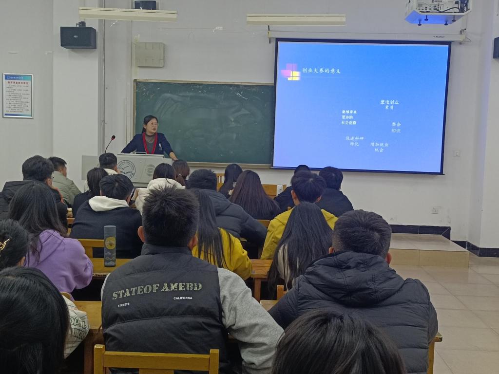 培训会上,安老师围绕创新创业主题展开论述,用创业典型打开话题,引出创新、创业定义及关系。安老师还为同学们介绍了“创青春”大学生创业大赛的创办背景、大赛类型以及比赛形式,重点讲解了商业计划书的撰写方法,对以往参赛的优秀商业计划书案例进行了非常详细的分析和说明,加强了同学们对商业计划书的了解。同时提醒参赛者在创业计划书的撰写过程中要避免陷入假大空的陷阱和速度陷阱,要正确把握创业的方向和节奏,使参赛成员更加深入地理解了如何备赛。
