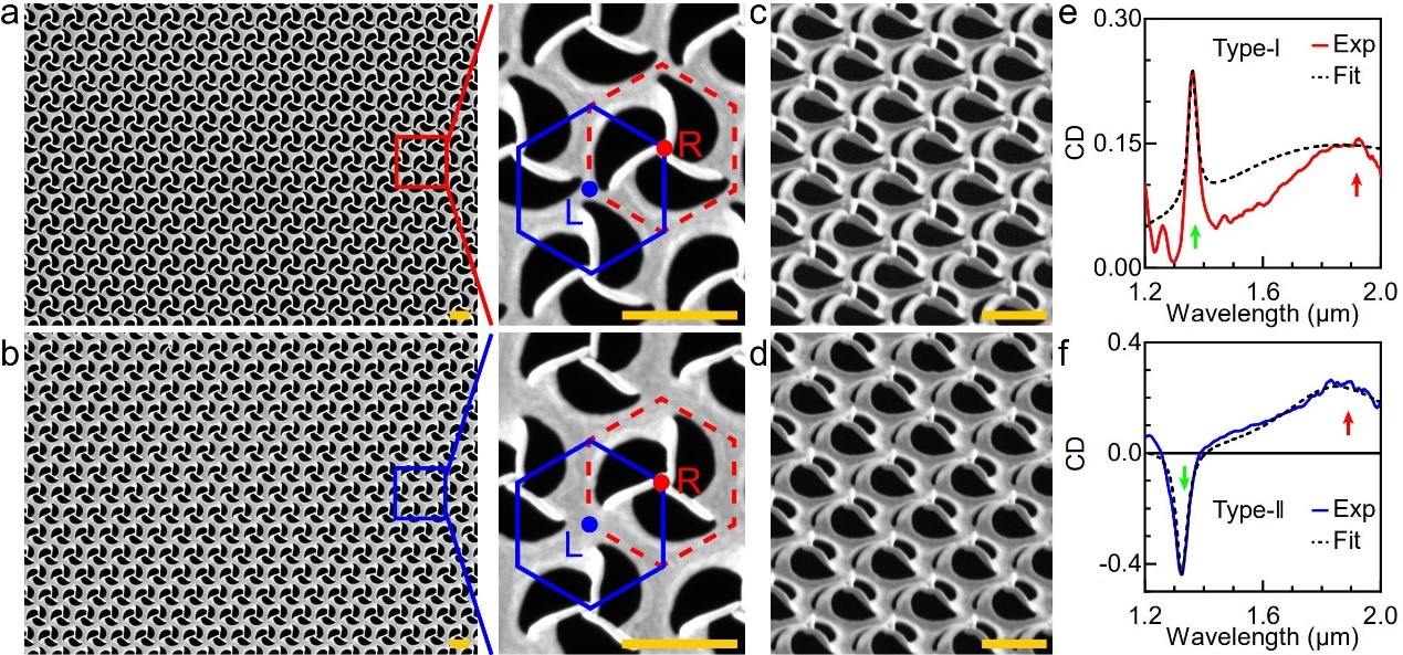 在之前的研究中,研究者主要利用具有明确旋向的螺旋几何构型来增强光和物质的手性相互作用。然而,这类构型的光学手性响应要实现反转,必须对其进行镜面对称操作,使结构发生巨大的改变。近年来,一种独特的螺旋桨状几何构型在分子领域引起了极大的关注,通过轻微地翻转“分子叶片”就可以反转其光学手性响应。然而,这种立体旋桨手性的研究仅仅局限于分子领域,在微纳光子学领域面临制备方法上的挑战。