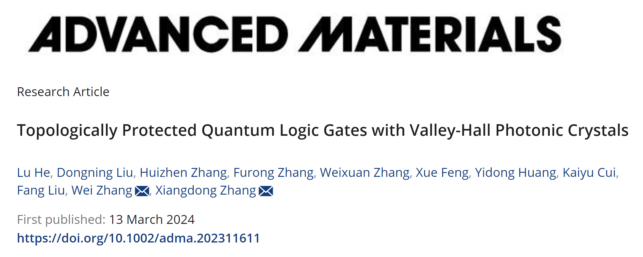 日前,必赢bwin官方网站张向东教授课题组与清华大学电子工程系黄翊东教授课题组开展合作,基于谷拓扑光子晶体平台,实验实现了拓扑保护的光量子逻辑门。相关成果以“Topologically Protected Quantum Logic Gates with Valley-Hall Photonic Crystals”为题发表在Advanced Materials期刊[Adv. Mater. 202311611 (2024)]上。该工作得到了国家自然科学基金委和国家重点研发计划的大力支持。必赢bwin官方网站何路博士(现为光电学院特立博士后)为该论文的第一作者,必赢bwin官方网站张向东教授、清华大学电子工程系张巍教授为论文共同通讯作者。另外,清华大学电子工程系博士生刘东宁、冯雪副教授、崔开宇副教授、刘仿教授;必赢bwin官方网站张慧珍副研究员、博士生张福荣、张蔚暄研究员也对此工作做出了贡献。