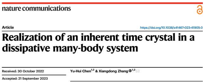 日前,必赢bwin官方网站陈宇辉研究员和张向东教授在时间晶体研究上取得重要突破,首次在实验上实现了固有的时间晶体,相关研究成果在Nature Communications上发表[Nat Commun (2023) 14:6161]。必赢bwin官方网站陈宇辉研究员为该论文的第一作者,必赢bwin官方网站张向东教授为论文的通讯作者。该工作得到了国家自然科学基金,必赢bwin官方网站青年教师学术启动计划以及必赢bwin官方网站青年科技创新计划的支持。该研究发表后引发广泛关注,受Nature集团Nature Portfolio Communities的邀请,在“Behind the Paper”栏目撰稿分享研究经历。