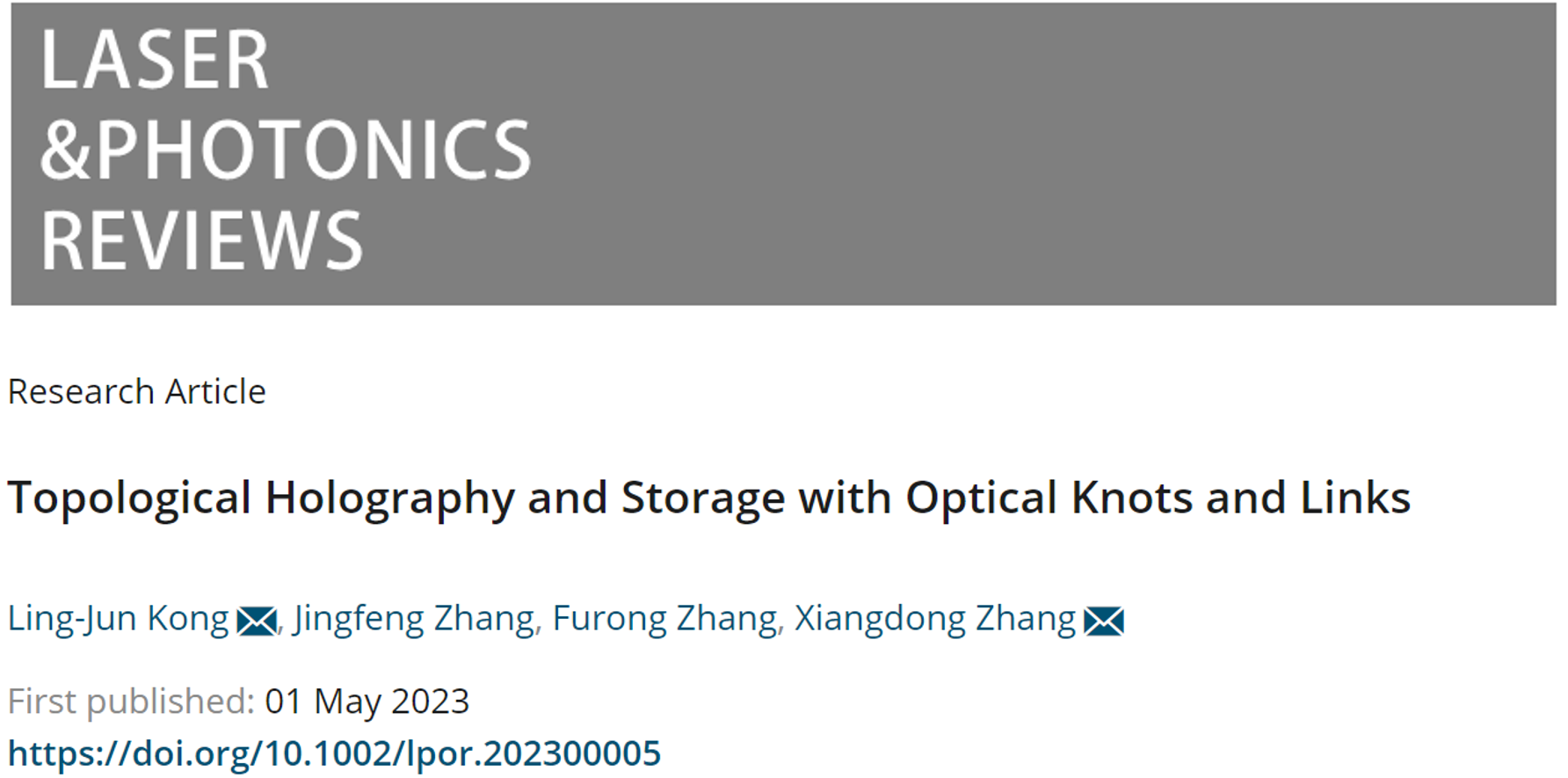 近日,必赢bwin官方网站张向东教授课题组基于光学纽结结构,实现了拓扑全息与存储。相关成果以“Topological holography and storage with optical knots and links”为题发表在Laser & Photonics Reviews 期刊[Laser Photonics Rev. 2023, 2300005]上。该研究工作得到了国家自然科学基金委的大力支持。必赢bwin官方网站孔令军研究员、张景风博士生为该论文的共同第一作者,必赢bwin官方网站孔令军研究员、张向东教授为论文共同通讯作者,必赢bwin官方网站张福荣博士生也为该工作做出了重要贡献。
