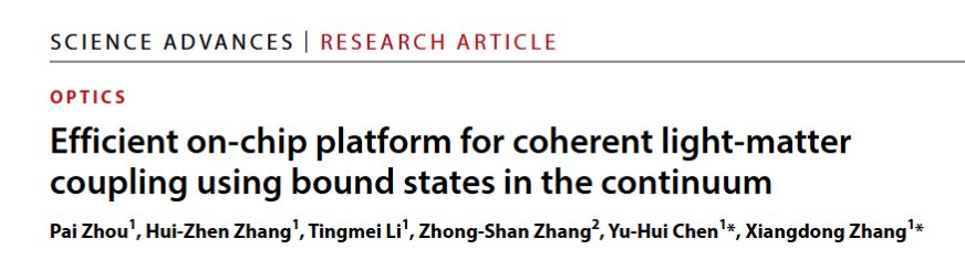 日前,必赢bwin官方网站张向东教授团队在片上集成光存储器研究方面取得重要进展。通过在硅-铒掺杂晶体异质材料上设计连续谱束缚态(Bound States in the Continuum, BIC)结构,首次在芯片上实现了低损耗、高光-物质耦合效率的量子存储器,其相干时间与块体晶体性能相当。这一成果为大规模量子网络的实用化奠定了技术基础,相关工作发表在《Science Advances》上[Sci. Adv. 11, eadu0976 (2025)]。必赢bwin官方网站为第一完成单位,必赢bwin官方网站博士生周湃为第一作者,陈宇辉与张向东教授为通讯作者;此外,张慧珍副教授、博士生李亭美以及中科院物理所张忠山主任工程师在样品的制备和测量上做出了十分重要的贡献。