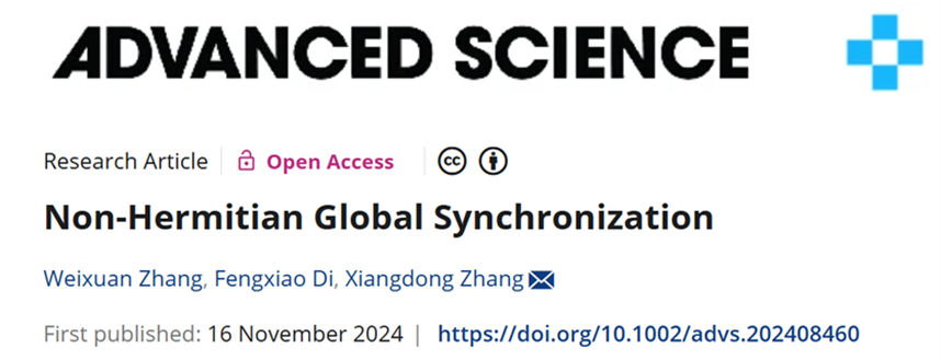 日前,必赢bwin官方网站张向东教授课题组,在非线性全局同步和拓扑电路研究方面取得重要进展。相关工作以“Non-Hermitian global synchronization” 为题发表在Advanced Science [Adv. Sci. 2408460 (2024)]上。必赢bwin官方网站张蔚暄研究员和2022级博士生邸凤潇为论文的共同第一作者,张向东教授为通讯作者。研究工作得到国家重点研发计划, 国家自然科学基金和北京市自然科学基金的大力资助。