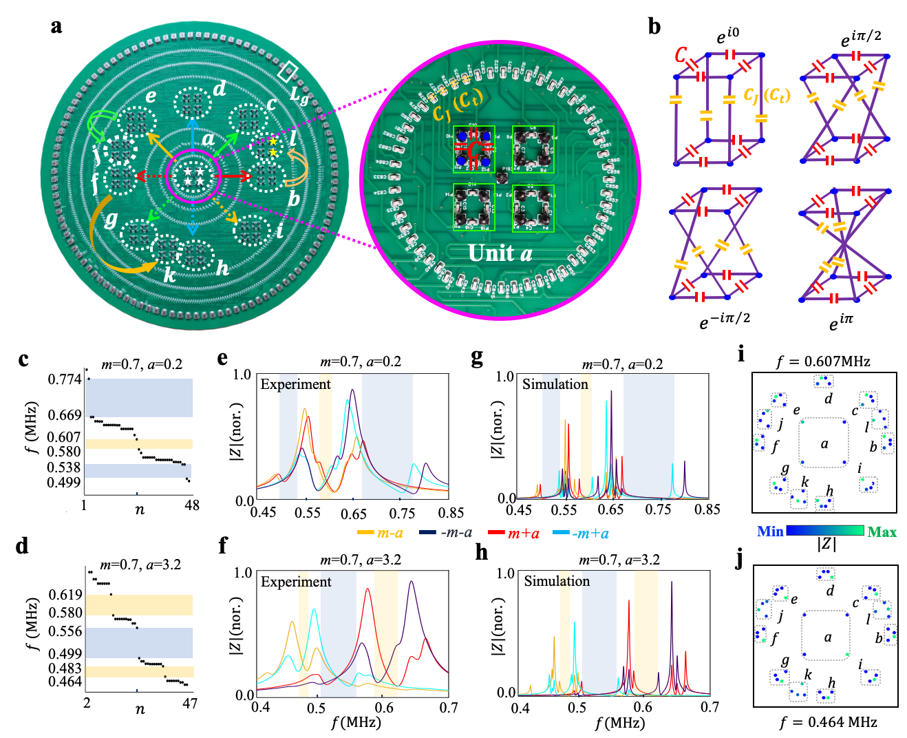 图3. 具有周期边界条件的有限双曲电路实验结果。
