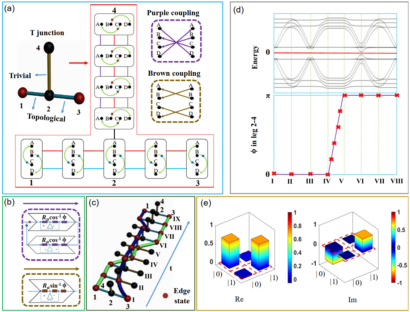 研究人员在实验中利用经典电路构造出具有拓扑保护的类马约拉纳零能模,并且通过操控这些零能模实现了编织功能,也演示了单比特门和两比特门的功能,此外通过使用多步编织展示了Grover搜索算法的功能。这一研究说明如果拓扑量子计算可以使用电路进行模拟,则有望避免现有量子计算方案面临的一些问题,如退相干和可扩展性。此外,电路网络中电阻引起的能量损失也可以通过连接电源来补充。也就是说,所构建的系统能够稳定地工作。因此该工作为构建一个可实用、稳健的快速信息处理系统铺平了道路。