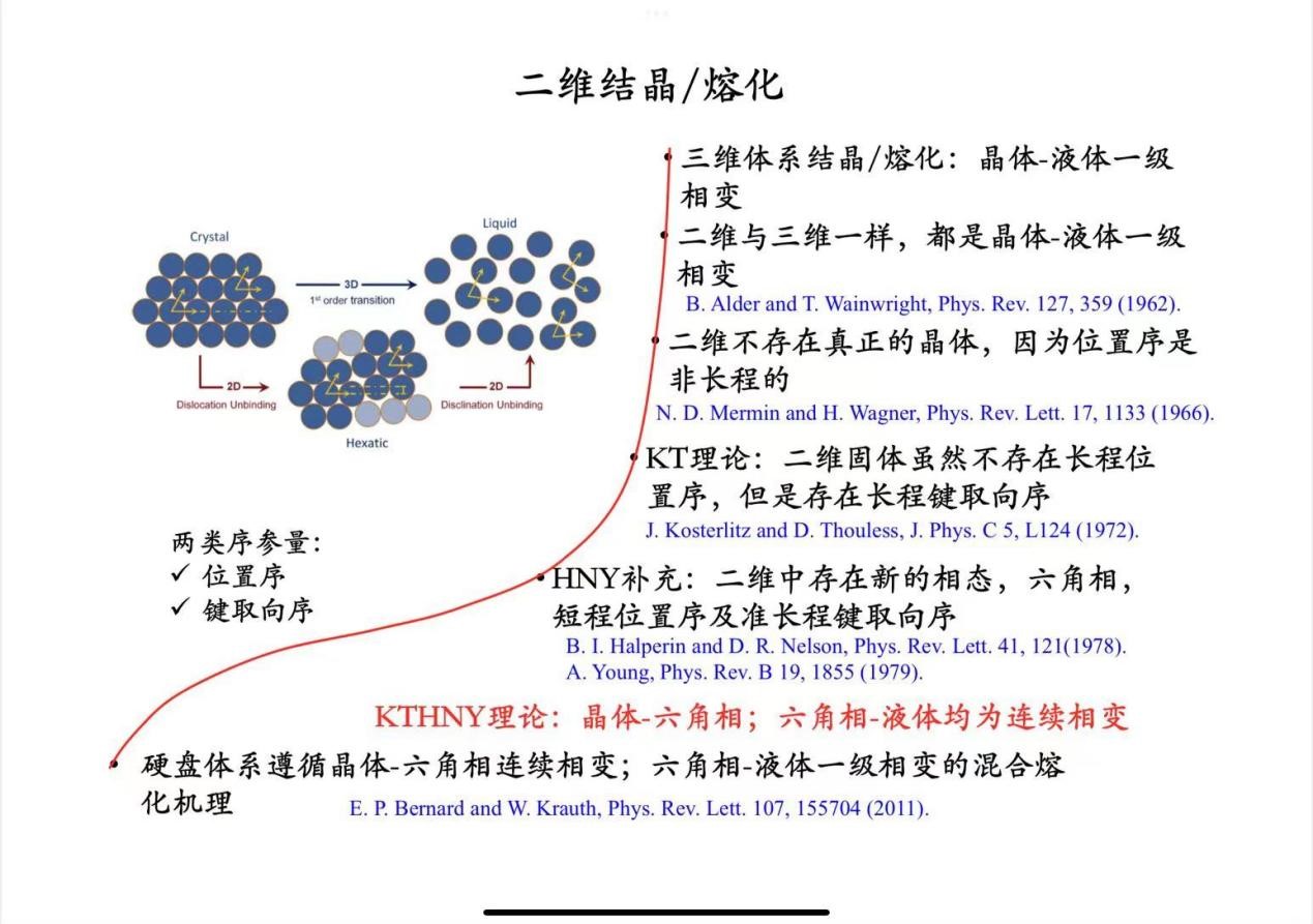 第二个介绍的是二维熔化机理及其控制因素。李艳伟老师从二维熔化/结晶研究的历史进程、影响熔化机理的因素、吸引相互作用对二维熔化机理的影响等方面为同学们介绍了二维熔化机理。