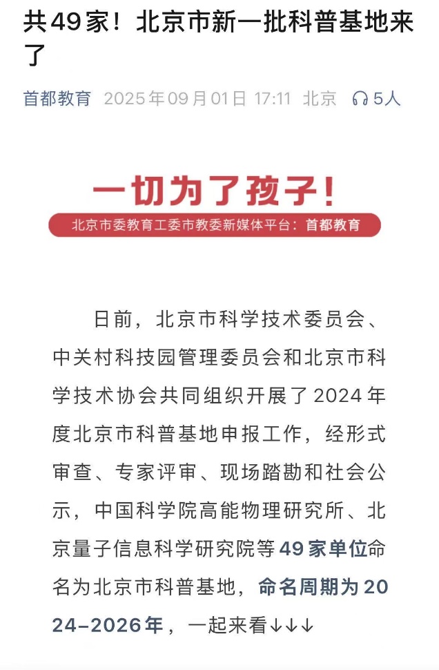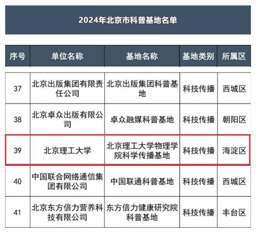 近日,北京市科学技术委员会等单位共同公布了北京市科普基地评审结果,必赢官网科学传播基地成功获评2024“北京市科普基地”称号。