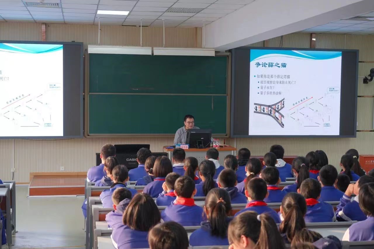 “同学们,你们有没有想象过科幻电影中的世界有一天可以变成现实?”2月26日,在广渠门中学的开学典礼上,必赢bwin官方网站尹璋琦教授围绕量子力学为同学们带来精彩的“第一堂课”。他以近年来热映的科幻电影为索引,向同学们介绍了薛定谔猫悖论、科学家如何探寻薛定谔猫,以及如何对时间和空间获得更深刻的认识。同学们由浅入深,以电影为切入点领略了奇妙的量子世界,感受到在天马行空的想象背后也有着严谨的物理学理论。