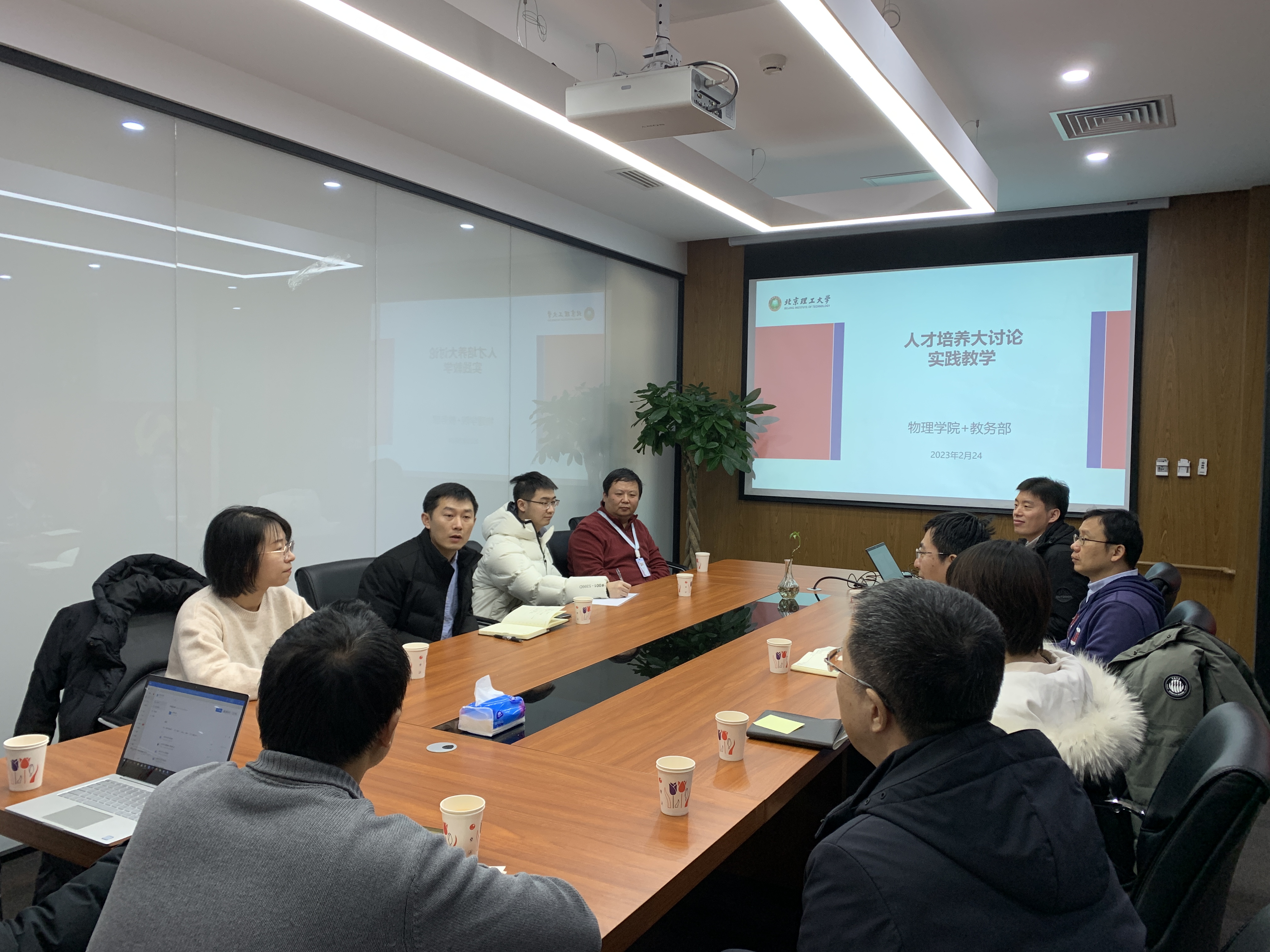 2023年2月24日上午,必赢bwin官方网站联合教务部实践教学室召开“实践教学”相关主题的人才培养讨论会。学院院长姚裕贵、教务部副部长陈浩、任鸿鹏、杨鹏伟、责任教授王菲、大学实验中心书记刘伟、副主任鲁长宏、肖文德、韩俊峰、教学干事温敏、王振宇、孙琳等人参加会议,会议由院长助理李军刚主持。