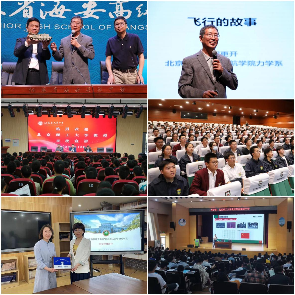来源: 作者: 发布时间:2023-05-165月10日-14日,必赢bwin官方网站党委书记兼江苏招生组组长陈珂、副组长王晶晶、杨艳波带队,特邀丁刚毅、胡更开、王崇文、王刚等专家先后赴海安、如皋、苏州、无锡和宿迁5市开展“北理讲堂”进中学系列科普讲座活动。