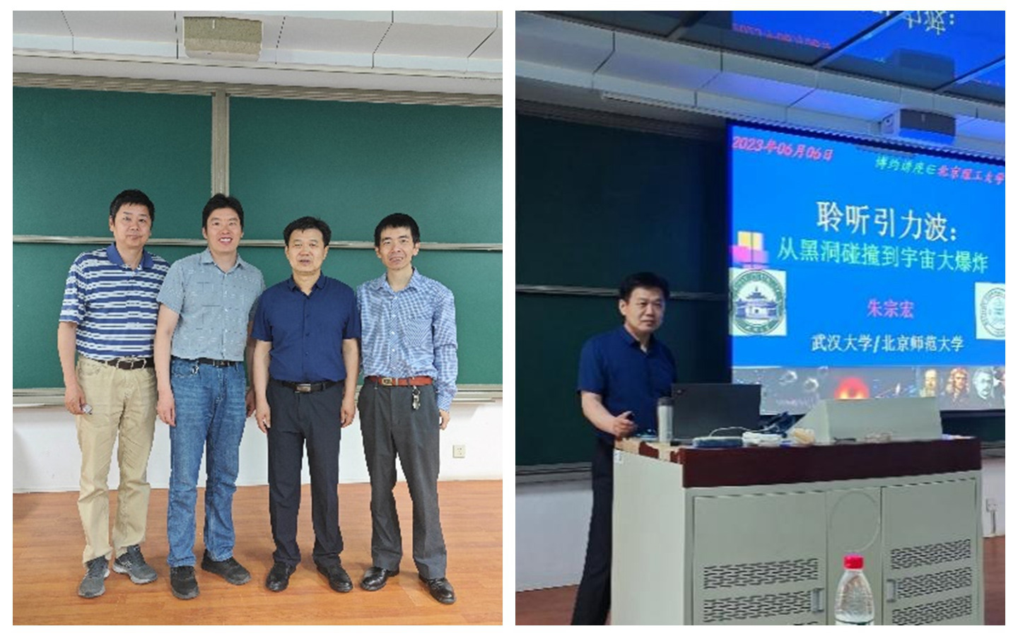 来源: 作者: 发布时间:2023-06-092023年6月6日下午13:30,武汉大学天文系/北京师范大学天文系朱宗宏教授做客必赢bwin官方网站“博约科技讲座”,在理学楼B座2-206教室为师生带来了一场题为《聆听引力波——从黑洞碰撞到宇宙大爆炸》的讲座。必赢bwin官方网站院长助理李军刚、缪劲松等教师以及近百名本科生参加。本次报告由必赢bwin官方网站韦浩主持。